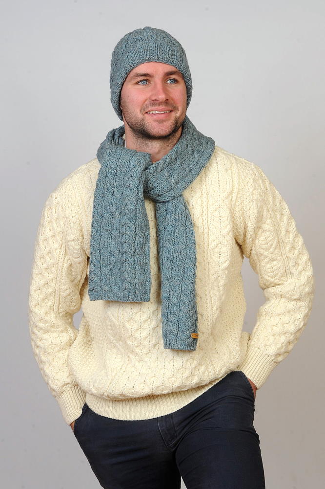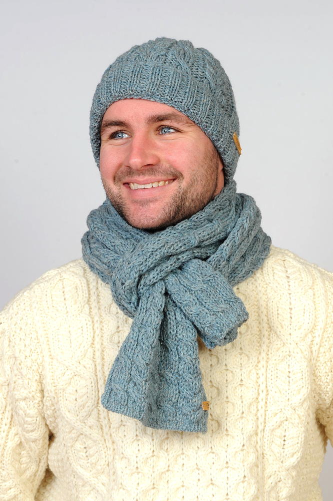 When days are cold and evenings even colder, our Barnesmore Aran Stitch Hat and Scarf set will keep you protected from the elements. Knit with traditional Aran stitches, in worsted wool which is warm and hardwearing.