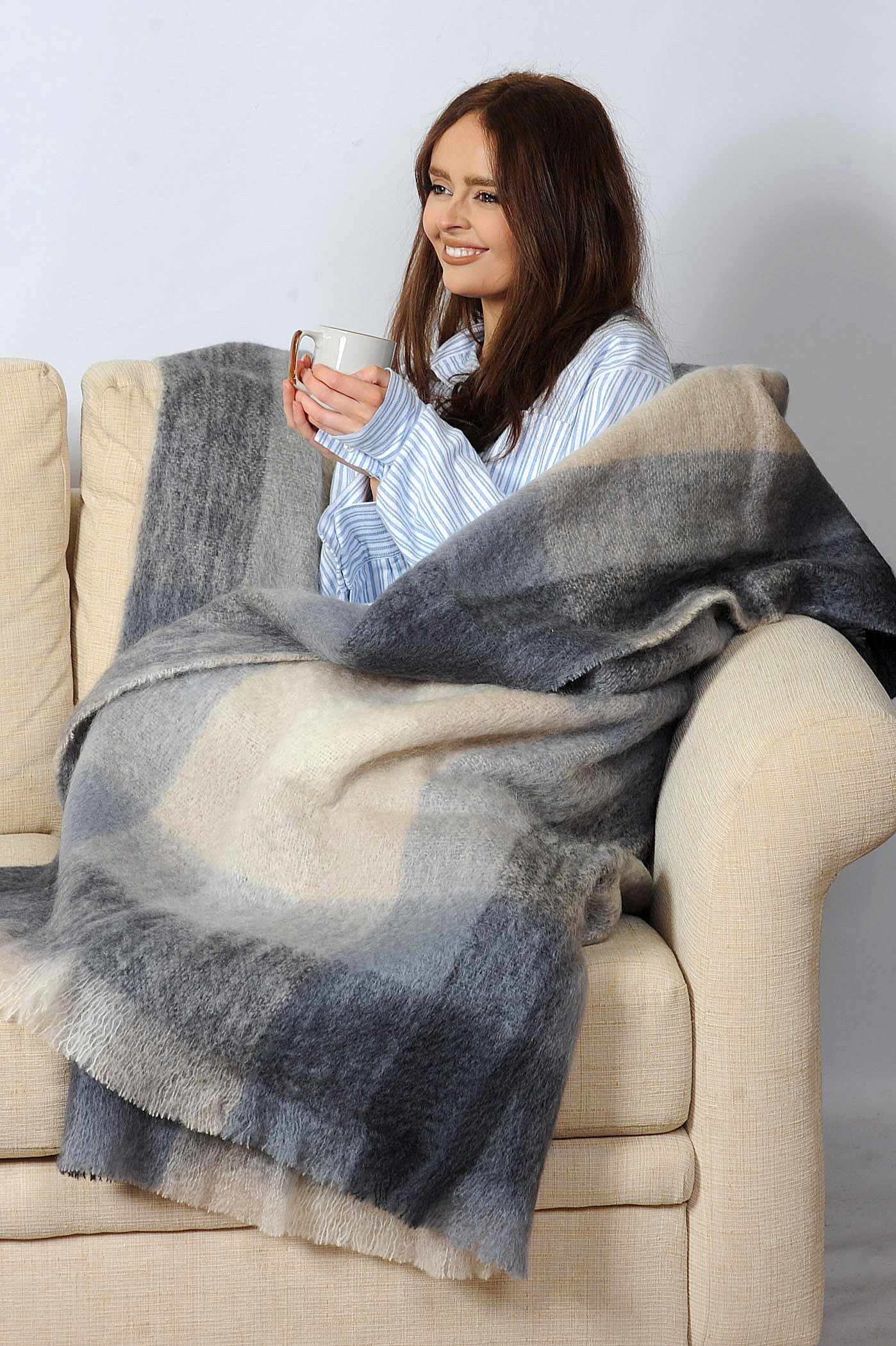 The Smokey Gray mohair throw measures 140cm x 170cm (55” x 67”)